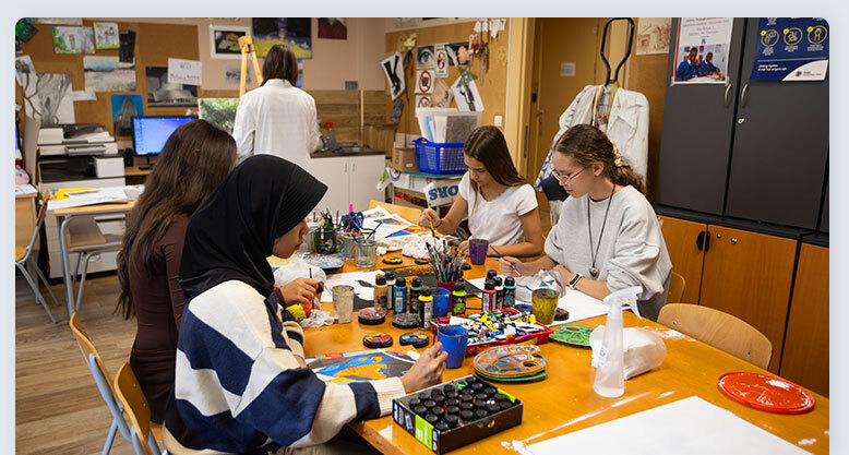 The Art Room is a creative space equipped with computers and a wide range of art materials, offering students the tools to explore their ideas, develop artistic skills, and express their imagination in inspiring ways.